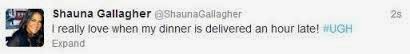 This is an easy one. No one wants to have to wait for their food, right? We construe that as a negative thing. So, someone acting excited or happy about their food being late is being sarcastic.